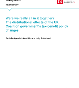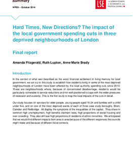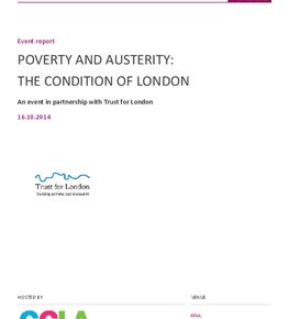 Publication | 27 Jan 2015 The Coalition’s Record on Area Regeneration and Neighbourhood Renewal 2010-2015 Publication | 16 Nov 2014 Were we really all in it together? The distributional effects of the UK Coalition government’s tax-benefit policy changes Publication | 14 Nov 2014 Double Jeopardy Publication | 2 Nov 2014 Living Wage – Evaluation of Special Initiative Publication | 30 Oct 2014 Poverty and Austerity: The Condition of London Publication | 29 Oct 2014 Tailor-made: how community groups improve people’s lives Publication | 16 Oct 2014 Hard times, new directions? The impact of local government spending cuts on three deprived neighbourhoods Publication | 13 Oct 2014 Evaluation of the Dove Project Publication | 9 Oct 2014 What can we do to support people to move out of low-paid work? Publication | 18 Sep 2014 2014 London Childcare Report Publication | 21 Jul 2014 Female Genital Mutilation in England and Wales: Interim report on provisional estimates Publication | 9 Jul 2014 Action Plan to Increase Employment Rates for Young Black Men in London Publication | 7 Jul 2014 Strategic Legal Fund evaluation Publication | 2 Jul 2014 Safeguarding Children’s Rights: Voices & Views from African Communities Publication | 24 Jun 2014 Paying the price: The long road to recovery Publication | 20 Jun 2014 Annual Review 2013 Publication | 11 Jun 2014 Families on the Brink: welfare reform in London Publication | 4 Jun 2014 Can the changes to LHA achieve their aims in London’s housing market? Publication | 6 Mar 2014 State of Children’s Rights in London Publication | 1 Mar 2014 Pathways to Employment – London Drug and Alcohol Network Previous 10/13 Next