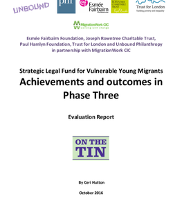 Publication | 12 Dec 2016 Moving On Up – Learning Report Publication | 15 Nov 2016 Beyond the Food Bank: London Food Poverty Profile 2016 Publication | 15 Nov 2016 Heading back to harm Publication | 15 Nov 2016 Strategic Legal Fund for Vulnerable Young Migrants: Achievements and outcomes in Phase Three Publication | 14 Nov 2016 Designing solutions to London’s temporary accommodation system: workshop outcomes Publication | 7 Nov 2016 Alcohol in the System: An examination of alcohol and youth offending in London Publication | 21 Oct 2016 Tough gig: Tackling low paid self-employment in London and the UK Publication | 5 Oct 2016 Still too poor to pay: three years of localised council tax support in London Publication | 18 Jul 2016 Still Out There: An exploration of LGBT Londoners’ unmet needs Publication | 12 Jul 2016 London Weighting and London costs – a fresh approach? Publication | 11 Jul 2016 Communities Tackling Female Genital Mutilation in the UK: Best Practice Guide Publication | 11 Jul 2016 The Tackling Female Genital Mutilation Initiative (2010-2016) Publication | 7 Jul 2016 Towards visibility: the Latin American community in London Publication | 23 Jun 2016 Annual Review 2015 Publication | 11 Jun 2016 Tackling Female Genital Mutilation in the UK: Views of People From Communities Affected by FGM Publication | 8 Jun 2016 Social Impact Report 2015 – Ascent Advice and Counselling: For women and girls affected by domestic & sexual violence Publication | 25 May 2016 ‘Changing our Heads’ Publication | 12 May 2016 Capital Losses: The state of the specialist BME ending violence against women and girls sector in London Publication | 25 Apr 2016 A Social Lettings Agency for London? Viability and potential Publication | 18 Apr 2016 Room to Breathe Previous 7/13 Next