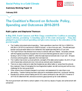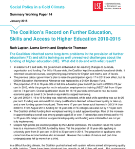 Publication | 31 Jul 2015 Taking Local Action on FGM – An Essential Guide for Local Authorities Publication | 22 Jul 2015 Fairness Commissions: Understanding how local authorities can have an impact on inequality and poverty Publication | 22 Jul 2015 Prevalence of Female Genital Mutilation in England and Wales: National and local estimates Publication | 24 Jun 2015 Review 2014 Publication | 20 May 2015 A Minimum Income Standard for London 2015 Publication | 1 Apr 2015 Private Rented Sector Licensing: Policy and Practice Publication | 12 Mar 2015 Falling Behind, Getting Ahead: The Changing Structure of Inequality in the UK, 2007-2013 Publication | 12 Mar 2015 The Changing Anatomy of Economic Inequality in London (2007-2013) Publication | 11 Mar 2015 LSE analysis of UK social policy 1997-2015 Publication | 11 Mar 2015 Paying the Price: The childcare challenge Publication | 10 Feb 2015 The Coalition’s Record on Schools: Policy, Spending and Outcomes 2010-2015 Publication | 27 Jan 2015 The Coalition’s Social Policy Record: Policy, Spending and Outcomes 2010-2015 Publication | 27 Jan 2015 The Coalition’s Social Policy Record: Policy, Spending and Outcomes 2010-2015 Publication | 27 Jan 2015 The Coalition’s Record on Cash Transfers, Poverty and Inequality 2010-2015 Publication | 27 Jan 2015 The Coalition’s Record on the Under Fives: Policy Spending and Outcomes 2010-2015 Publication | 27 Jan 2015 The Coalition’s Record on Further Education, Skills and Access to Higher Education 2010-2015 Publication | 27 Jan 2015 The Coalition’s Record on Health: Policy, Spending and Outcomes 2010-2015 Publication | 27 Jan 2015 The Coalition’s Record on Employment: Policy, Spending and Outcomes 2010-2015 Publication | 27 Jan 2015 The Coalitions’s Record on Adult Social Care: Policy, Spending and Outcomes 2010-2015 Publication | 27 Jan 2015 The Coalition’s Record on Housing: Policy, Spending and Outcomes 2010-2015 Previous 9/13 Next