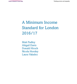 The new report provides an update of the cost of a minimum budget, needed for a minimum standard of living, for four core households in Inner and Outer London comparing these with the rest of the UK. The update is based on price increases between 2016 and 2017, along with available data concerning childcare, transport and housing costs in the capital.