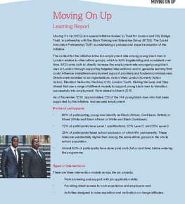 The MoU Initiative aimed both to directly increase the employment rate amongst young black men in London through supporting targeted interventions; and to generate learning that could influence employers, mainstream employment support providers and funders/commissioners.